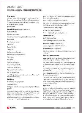 Altop 300 uygulanmış yüzey, normal beton yüzeye gö- sından hemen sonra, toplam miktarın 2/3 ü, taze be-